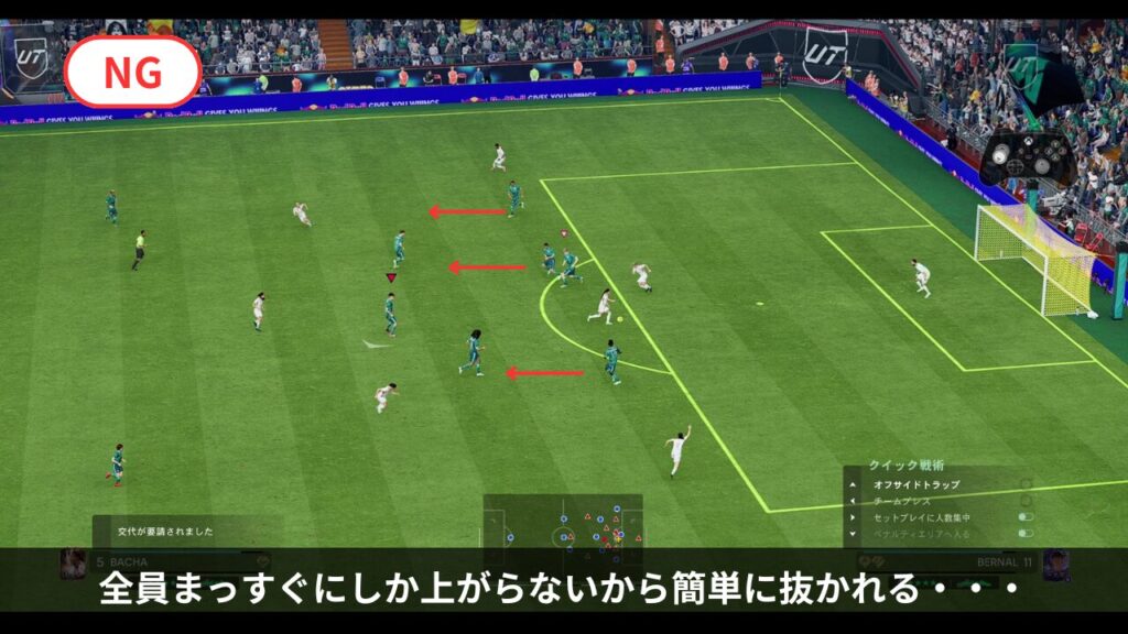 - オフサイドトラップでラインを整える