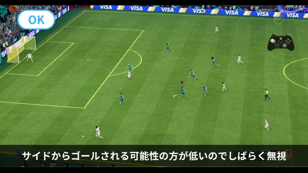 右スティックを弾いて、動かしたい選手へ確実に切り替える癖をつけましょう。