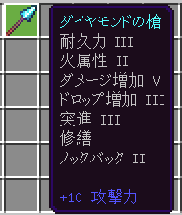 あとはエンチャントテーブルで付かなかったもの、例えば耐久力Ⅲなどを手に入れましょう。