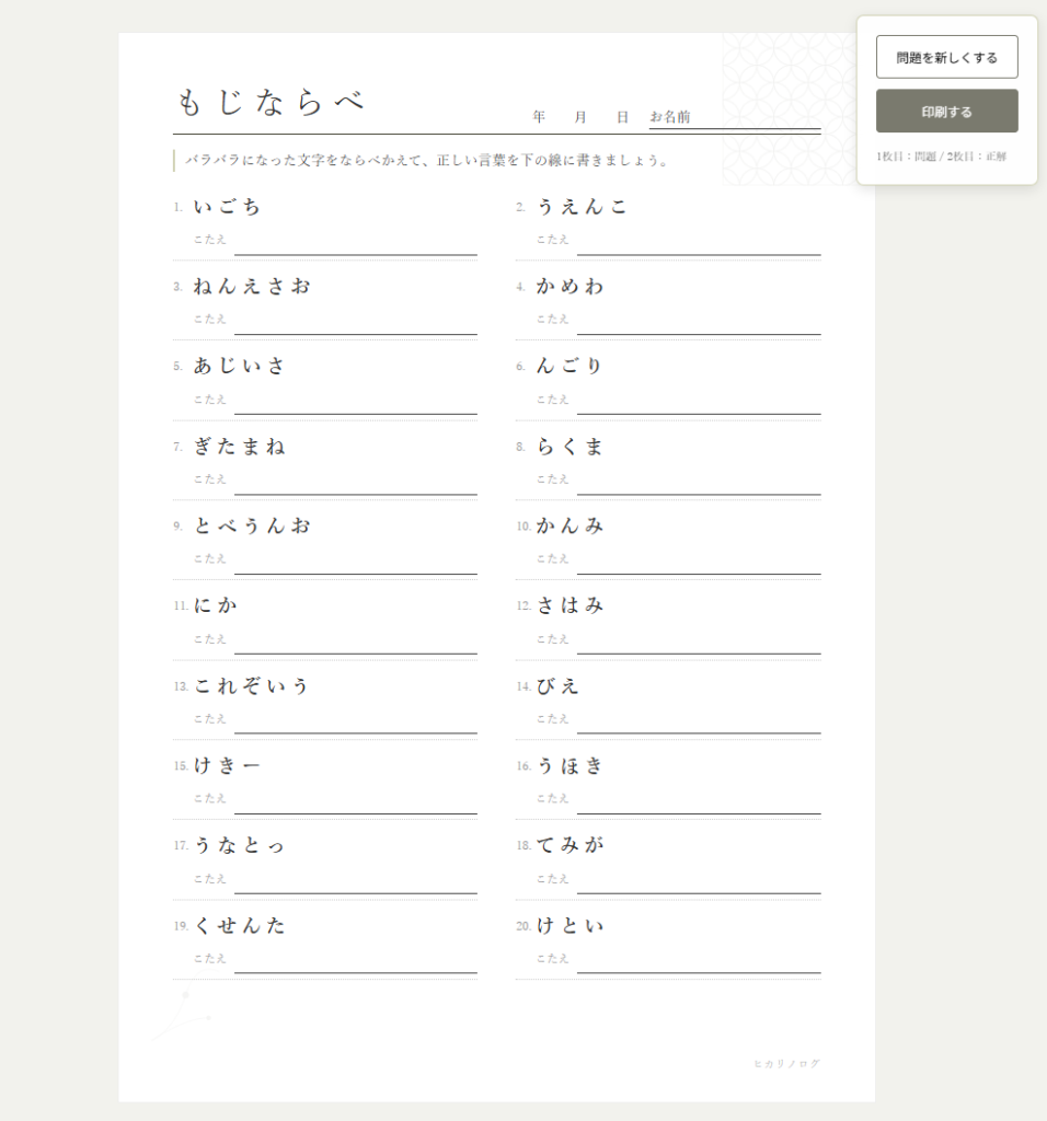 ここでは、落ち着いた和のデザインのもじならべをご用意しました!