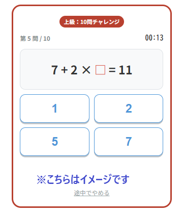 - 「挑戦を始める!」を押すと、問題が出て、時間を計り始めます。